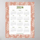 Calendário moderno de 2024 para um período de 12 meses de cheio. Começar o ano fresco com este lindo calendário, com um padrão de folha em relação a um fundo castanho de pêssego quente e um texto verde-oliva. Personalize para fazer dele seu ou para alguém especial.