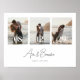 Arte de Parede de Casal de Noivos Moderna com 3 Fotos. Personalize este pôster minimalista e elegante com 3 das suas fotos de casamento favoritas, nomes dos noivos, data do casamento e local. Este item é um ótimo presente de aniversário de casamento personalizado ou uma ideia de presente para recém-casados.