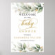 O Eucalyptus moderno deixa o sinal de boas-vindas de ouro poster 24x36 para Chá de fraldas, Contacte-me para obter itens correspondentes ou para personalização, Rosas de Blush ©