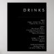Este moderno minimalista O poster de cardápio de bebidas negras é perfeito para o seu casamento clássico. Seu design abstrato simples e único, acompanhado de sua paleta de cores preto e branco, dá a este produto uma sensação de luxo formal elegante enquanto permanece simplista, boêmica química. Mantenha-o como está ou escolha personalizá-lo com trabalho de arte ou gráficos de sua escolha. Você também pode procurar outros produtos dentro desta coleção para juntar todo o seu casamento!