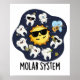O Molar System Funny Dental Astronomy Pun apresenta um belo punhado de dentes molares circulando ao redor do sol enquanto eles formam o sistema solar, presente Perfect Puns para a família e amigos que adoram trocadilhos fofos do sistema solar.