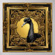 Uma imagem impressionante que apresenta uma avestruz preta contra uma estrutura decorativa de ouro luxuoso e preto, evocando um senso de opulência e exotismo. O contraste entre as penas negras e elegantes da avestruz e os detalhes intrincados e elegantes da armação cria uma composição visualmente cativante.
