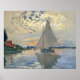 Monet Sailboat - Este belo veleiro francês é do impressionista francês Claude Monet, pintado em 1874. Monet foi um dos artistas impressionistas franceses mais importantes que já viveram. O título exato da pintura é "veleiro na Petit-Gennevilliers", um óleo na canvas. A pintura mostra um veleiro solteiro com um pôr do sol vivo no fundo e um reflexo encantador do barco no primeiro plano.