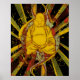 O monge budista chubby senta-se em meditação enquanto espirais de feixes multicoloridos de energia o rodeiam num brilho brilhante! Monk em meditação arte perfeita para criar um sentimento relaxante, mas enérgico!