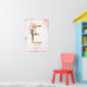 Poster Monograma de letra E dourado Folhas Magnólia Rosa