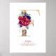 Poster Monograma de letra F floral azul marinho e burgund