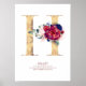 Poster Monograma de Letra H Floral Azul Marinho e Borgonh