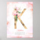 Poster Monograma de letra K dourado Folhas de Magnólia Ro