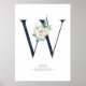 Poster Monograma de Letra W com Flores Brancas e Folhagem