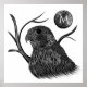 Trabalho de arte preto e branco de um falcão peregrino com lua de cheio e galhos de árvores. Use o modelo de texto para adicionar uma inicial ou um monograma à lua. ♡ Idyllfire
