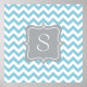 Um padrão de zag zag em forma de guiamento de guiões, azul e branca, tem um quadro de monograma de cinza leve com inicial personalizável.