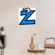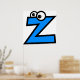 A letra Z do monograma engraçado é azul e preta com olhos de desenho animado. Personalize e escolha facilmente a sua própria cor de fundo. Imagem disponível em vários presentes e produtos.
