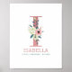 Monograma Nursery Poster com a Letra I, nome do bebê e texto adorável, "amado ・ querido ・ adorado" (editável). A letra I tem um efeito colateral rosa e é decorada com um belo buquê de aquarela de flores rosa e marfim com folhagem verde. O nome do bebê e o texto da afirmação são escritos em tipografia de maiúsculas rosa e verde e o modelo está pronto para você editá-los como quiser. Um poster personalizado bonito, moderno e feminino para o berçário da sua menina ou o quarto da menina.