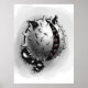 Poster com um trabalho de arte desenhado a tinta digital que mostra um monstro esférico estranho com uma concha pontiaguda e uma cauda e orelhas peludas de gato.