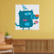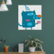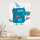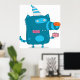Acelere qualquer espaço com este poster com um monstro de cartoon azul, branco, vestindo um chapéu de festa listrado e segurando um presente. Perfeito para quartos de crianças, salas de jogos ou decoração de festas de aniversário, este design lúdico adiciona cor e humor às suas paredes. Uma impressão de arte divertida e alegre, ela faz um presente excelente para qualquer um que ama personagens peculiares e imaginativos.