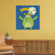 ilumine o quarto ou a sala de brinquedos de qualquer criança com este adorável pôster do monstro verde apresentando uma alegre criatura com chifres e uma ousada mensagem de boo em amarelo. A vibrante ilustração de desenho animado mostra um mascote verde-limão feliz contra um céu noturno estrelado e uma grande lua brilhante. Esta arte de parede assustadoramente amigável é perfeita para decorações de Halloween ou decoração de berçário durante todo o ano para crianças que amam monstros caprichosos. Impresso com cores de alta qualidade, este pôster temático de personagem adiciona um toque lúdico e festivo a qualquer espaço.