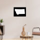 A forma do estado de Montana em preto e branco. Altere a cor de fundo ou adicione uma mensagem de texto de souvenir personalizada.