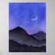 Uma pintura aquosa ACEO de Orion, o Caçador, e uma lua crescente sobre as montanhas Appalachian.