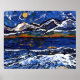Uma pintura das Montanhas da Olimpiadas com Puget Sound no pôr do sol.