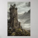 Montanhas modernas do castelo escocês nebulosas em um penhasco