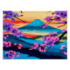 Uma bela e vívida representação do Monte Fuji e flores de cereja, capturando as cores espantosas da beleza da natureza. Perfeito para qualquer decoração doméstica, oferecendo uma atmosfera serena e vibrante.