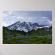 As flores silvestres de verão no primeiro plano adoram esta foto do Monte Rainier. Esta poster melhoraria a decoração de qualquer casa ou escritório.