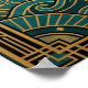 Uma majestosa homenagem arquitetônica ao espírito do Oeste. Esta obra de arte apresenta uma silhueta preta de uma cowgirl montando um cavalo, apresentada como um monumento no topo de um pedestal ornamentado em Art Déco. Enquadrado por um arco geométrico em estilo catedral e um sol nascente vibrante laranja, o céu azul-esverdeado profundo é pontilhado com estrelas e nuvens estilizadas. Perfeito para um rancho moderno, estudo sofisticado ou uma parede de galeria única.