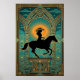 Poster Monumento de Cavalos da Cowgirl Art Déco Sunburst