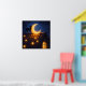 Poster Moonlit Cat on Starry Rooftop