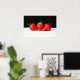 Morangos a preto sobre branco - Estudo contrastante de dois conjuntos de três morangos fotografados contra fundo preto e branco alternado criando um aspecto vívido e ligeiramente retrógrado da década de 60. © Alan Harman Fotografia 2013. Todos os direitos reservados. www.alanharmanphotography.com 100518 poster impressão