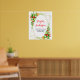 Este poster de diversão e capricho apresenta morangos, margaridas e folhagem a cores aquáticas numa moldura geométrica dourada. O texto combina o script manuscrito e as fontes serif para uma aparência na moda e moderna. Ele pode ser personalizado com as estatísticas de nascimento do seu bebê, como nome, tamanho, data e hora de nascimento, ou se você quiser dar a ele como um presente de chá, você pode editar e remover texto.