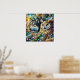 Ai art retratou um lobo e coruja no estilo do mosaico azulejo. Olhos azuis lobo e poster de coruja séria. Excelente para quem ama a vida selvagem.