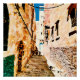 Essa pintura cativante celebra a beleza da arquitetura urbana, com sua diversidade de edifícios e estruturas. O colorido estilo mosaico adiciona um toque lúdico e artístico à cena.