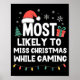 Most Likely To Miss Christmas While Gaming Gamer Funny Xmas