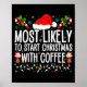 Poster Most Likely To Start Christmas With Coffee Funny F