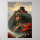 Entra num reino da antiga tranquilidade com esta pintura chinesa clássica. Um monastério percorre graciosamente uma colina rochosa, a sua arquitetura honrada, um testemunho da harmonia espiritual. Abaixo, um rio flui através de um vasto vale, natureza e arquitetura derretendo em uma dança serena que evoca um senso de reverência e admiração.