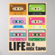 Oitenta e oito Poster de fita cassete - Não se engane se há definitivamente uma arte para fazer de uma fita mixada incrível. Muito parecido com a arte de ter uma vida feliz e realizadora. Quer você estivesse tentando conquistar o coração de alguém ou simplesmente ligar seus amigos para algumas músicas excelentes, a fita misturada era um negócio sério na época. Acelere sua área de entretenimento em seu escritório ou em casa com este poster de fitas de música multi-coloridas extremamente funerárias do K7 em um estilo vintage. Isso também seria o presente ideal para aquele amigo, membro da família ou colega de trabalho que ama todas as coisas retrógradas. Esta inspiradora poster fala sobre a Vida - afinal de contas, a vida é uma fita mista. .