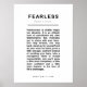 A poster SEM MEDO é um poderoso lembrete de que você pode sentir medo, ser corajoso e continuar avançando. O medo vem em muitos disfarces que nem sempre reconhecemos. Simplesmente dizer que estamos à espera do momento certo ou as circunstâncias podem mascarar o medo subjacente. Coloque esta poster onde você a verá todos os dias, e ela lhe dará um impulso de encorajamento quando você mais precisar.