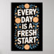 Descanse seu espaço e levante seus espíritos com este poster motivacional "Todo dia é um novo começo". Com sotaques florais vibrantes em laranjas quentes e blues calmantes, este design combina inspiração com beleza, fazer perfeito para uma variedade de cenários. Quer você esteja querendo adicionar um toque de positividade ao seu escritório doméstico, uma sala de aula, ou até mesmo uma sala de estar, esta trabalho de arte é segura de energizar qualquer espaço. A tipografia ousada se destaca em um fundo marinho profundo, enquanto as delicadas flores em torno do texto somam um toque de elegância. Esta peça oferece um lembrete diário de que cada novo dia está cheio de possibilidades. Ideal para enquadrar ou dotar, irá complementar os estilos de decoração modernos e tradicionais.