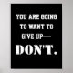 Motivação Inspiracional Nunca Desista De Posters De Cotação. Poster preto com texto branco que diz, 'você vai querer desistir—NÃO.'