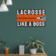 Poster de lacrosse fantástica, com lax stick e citação original: Lacrosse como chefe.