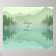 Poster de motivação em tons de sábio e verde neste incrível reflexo da paisagem de Montanha com vergreens e lago névoa