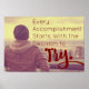 Toda realização começa com a decisão de tentar. Poster de inspiração motivacional. Foto do homem olhando para a vista cênica profundamente no pensamento.