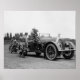 Brigadeiro dos Fuzileiros Navais dos EUA, General Smedley Butler, num carro antigo grande com escolta de motocicleta. Foto de junho de 1922.