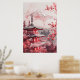 A traditional Japanese landscape – the majestic Fuji and a pagoda in the rays of the setting sun. The perfect poster for lovers of Japan and Eastern culture.