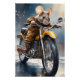Rato bonito numa jaqueta marrom e calças para passear de moto.