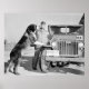 Kelly Field, Texas. Rua Bernard "Júlio César", mascote da Polícia Militar. Ele tem três fitas e uma pedigree. Fotografia da safra tirada em 1942.