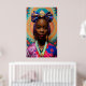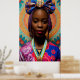 Uma imagem de uma mulher africana com um grande arco floral e medalhão. Esta é uma imagem criada pela IA com o tema floral design.