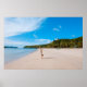 Poster Mulher com acrobacia no litoral perto da montanha