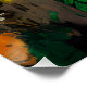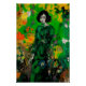 Uma pintura gerada por IA de uma mulher em um vestido verde caminhando por um prado verde